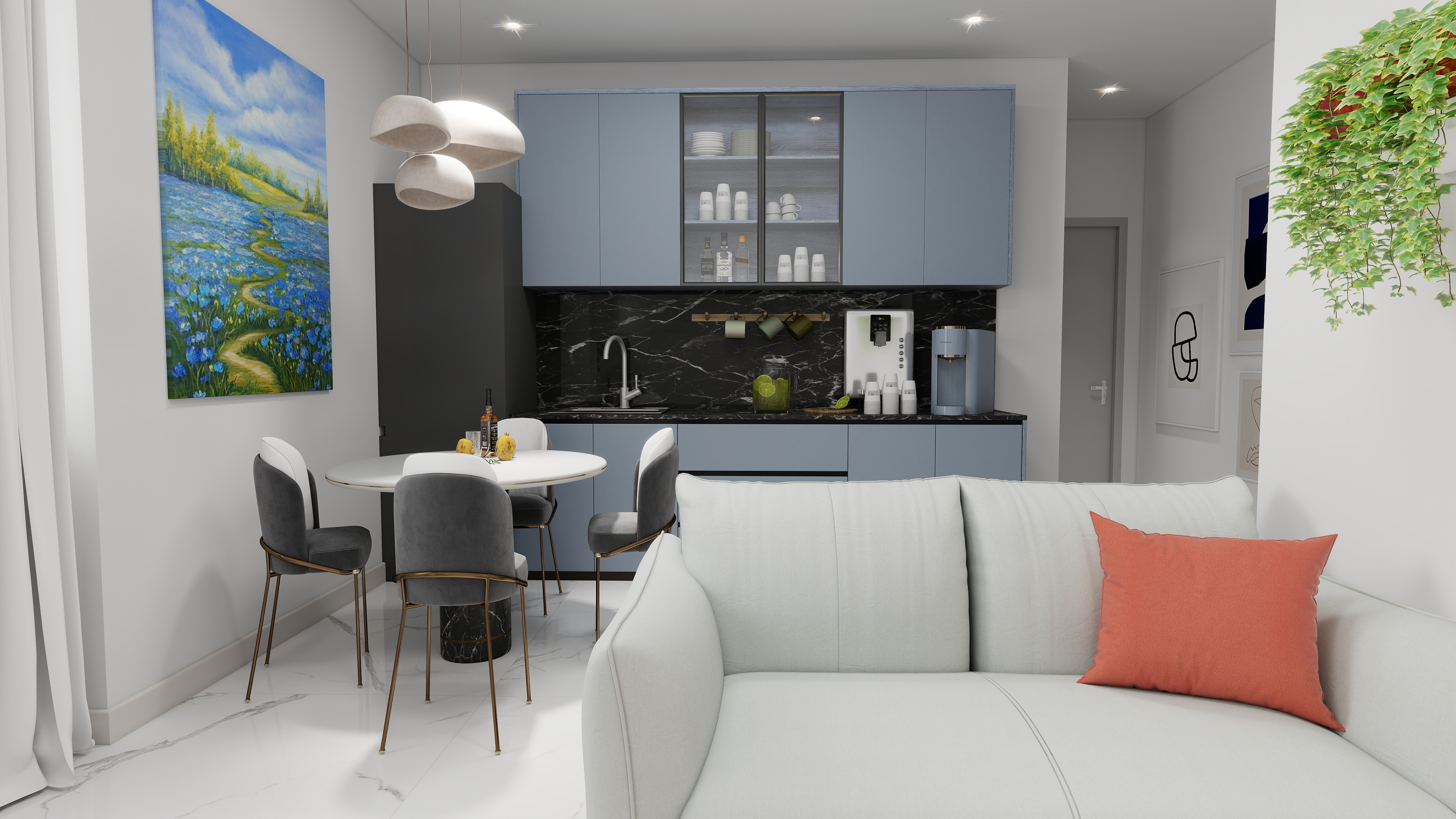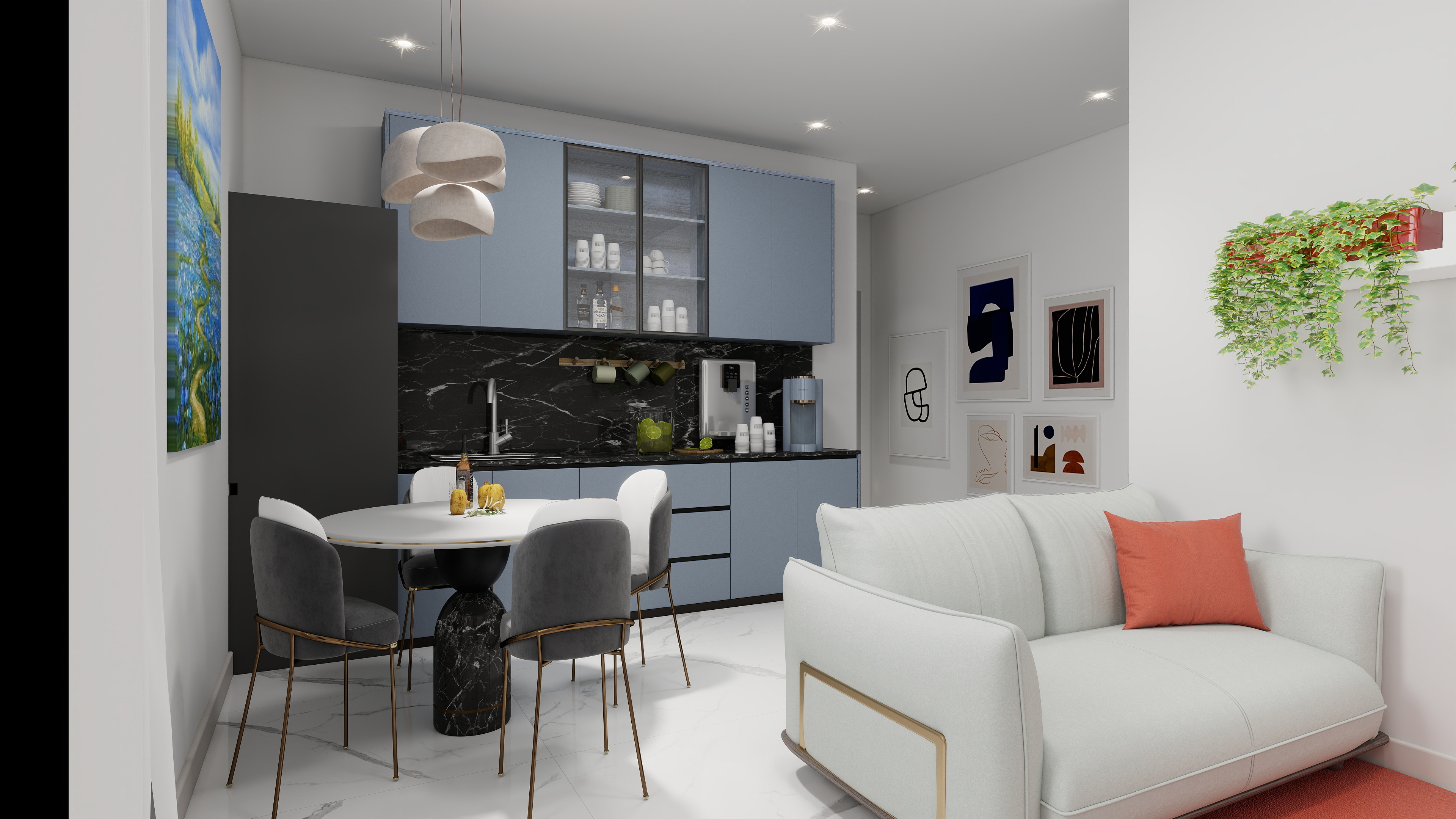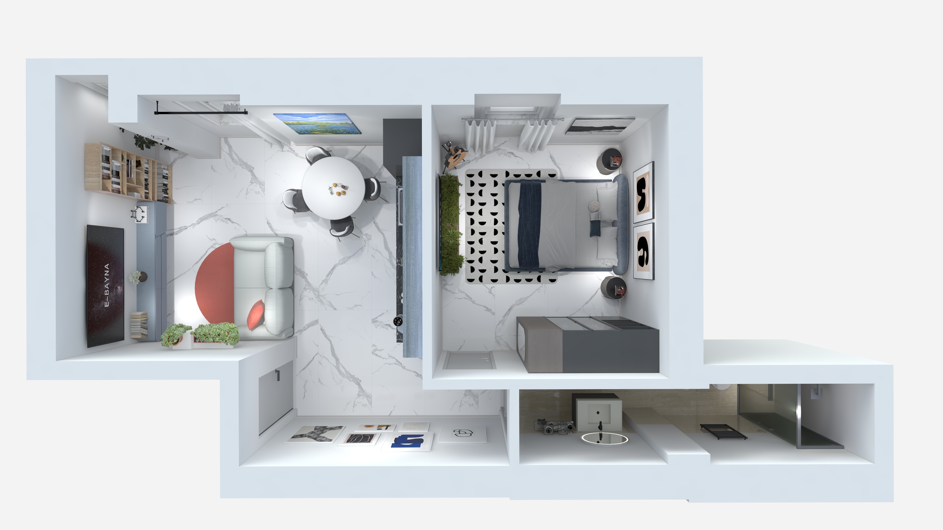 Il bilocale è caratterizzato da una distribuzione razionale degli ambienti, mirata alla massima luminosità e vivibilità. L’ampia e accogliente zona giorno con cucina a vista crea uno spazio centrale e conviviale, a cui si aggiunge una camera da letto matrimoniale e un bagno moderno e rifinito.