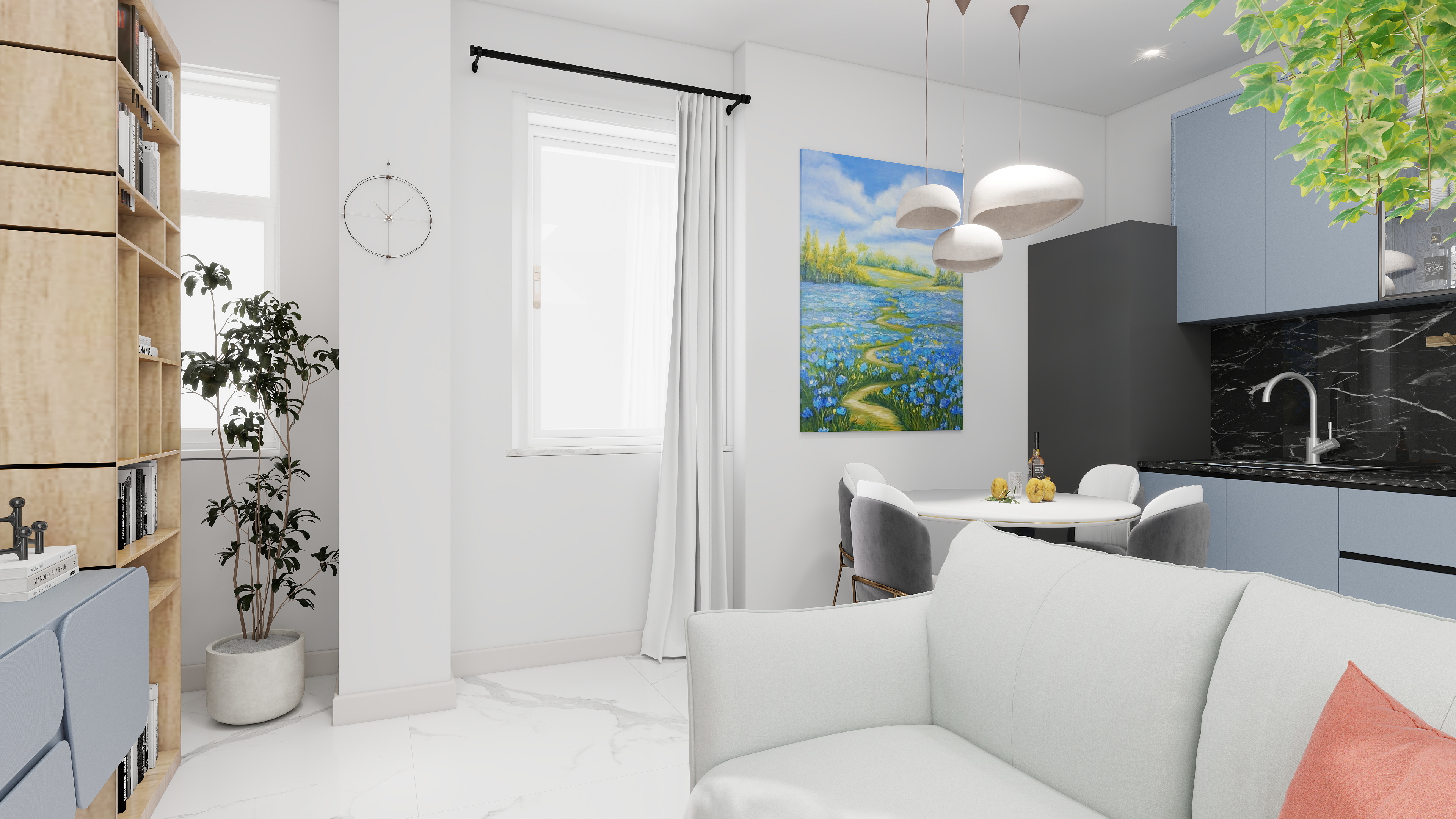 Il bilocale è caratterizzato da una distribuzione razionale degli ambienti, mirata alla massima luminosità e vivibilità. L’ampia e accogliente zona giorno con cucina a vista crea uno spazio centrale e conviviale, a cui si aggiunge una camera da letto matrimoniale e un bagno moderno e rifinito.