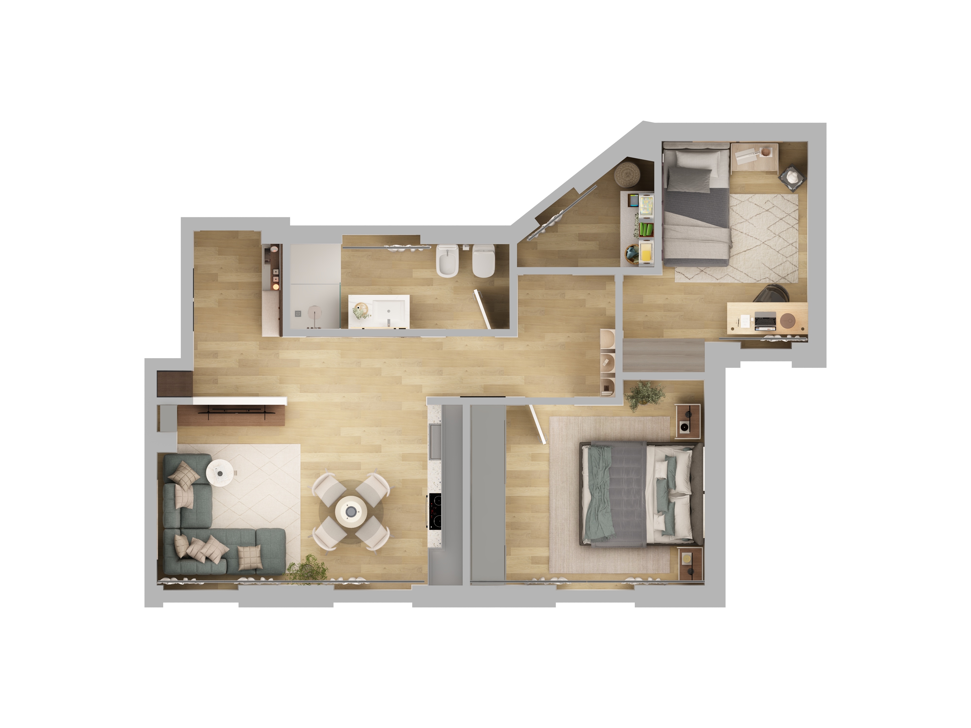 Configura la zona living che desideri, la cucina dei tuoi sogni e molti altri spazi dell’appartamento. Cambia materiali e stili, colori e combinazioni grazie al nostro configuratore.
