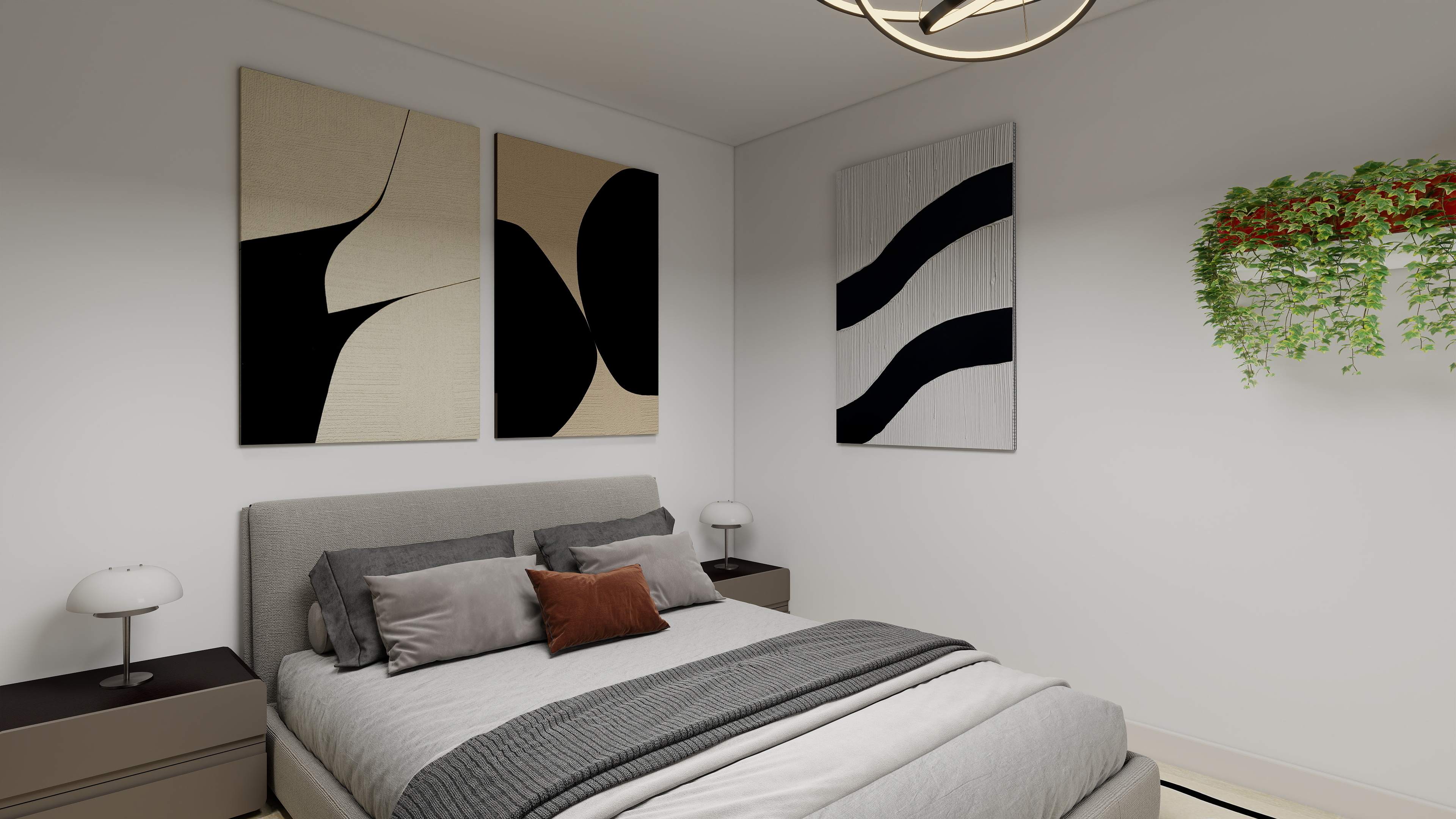 Il trilocale è composto da un’accogliente zona living luminosa con cucina a vista, che definisce un ambiente aperto e conviviale. Si prosegue con un’ampia camera da letto padronale, una camera singola, un bagno moderno con finiture di pregio e un comodo balcone.