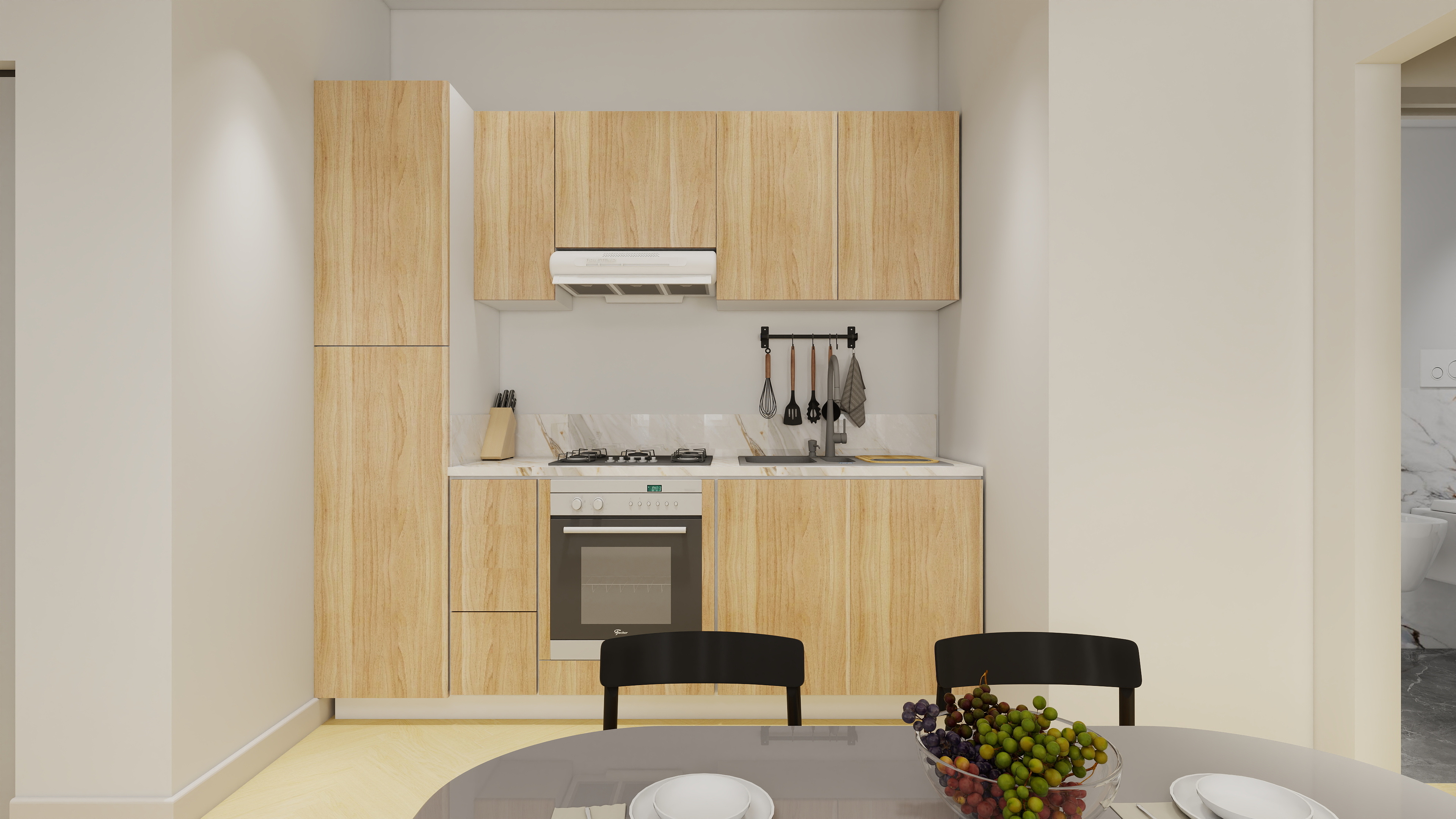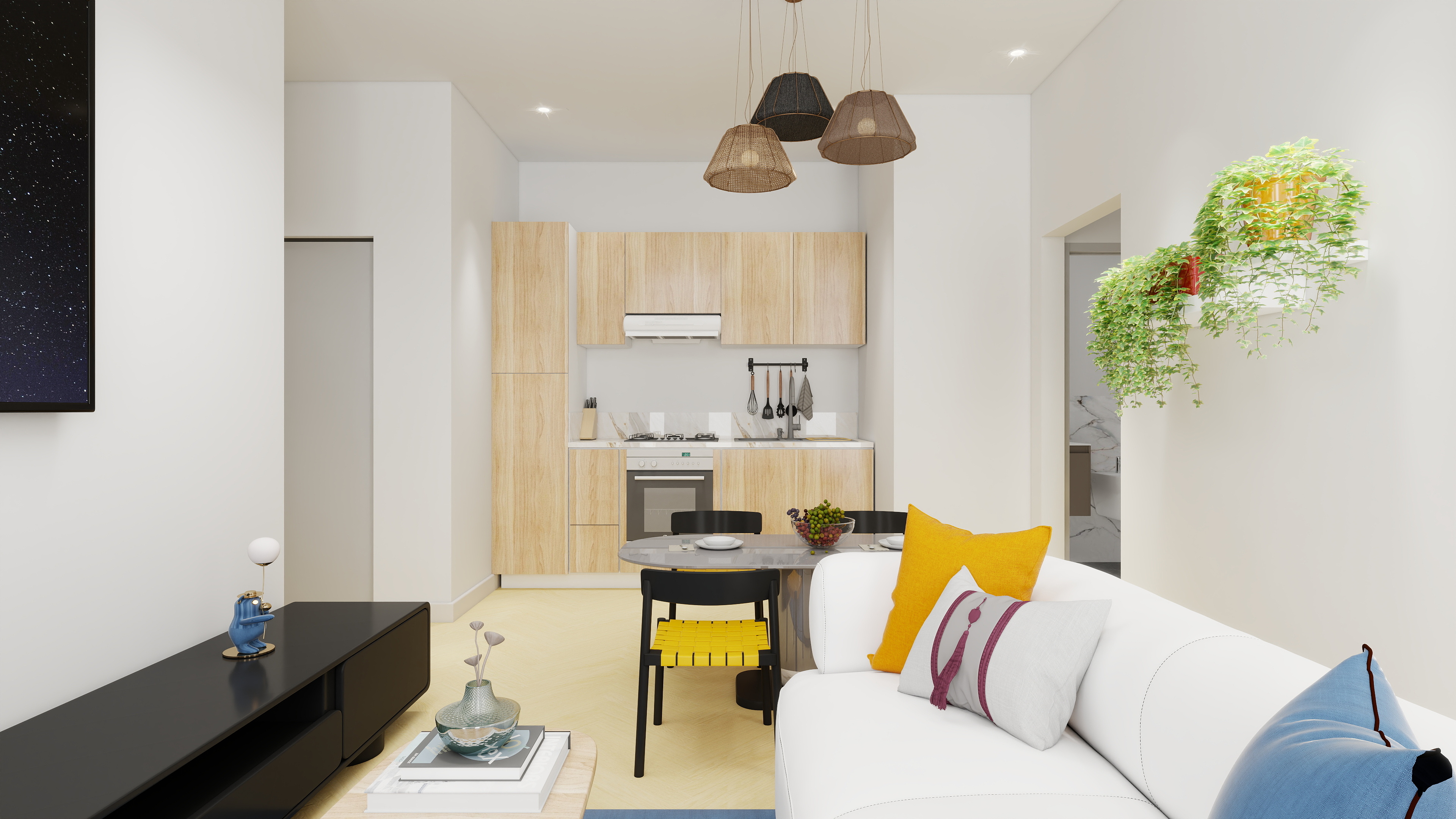 L’immobile è composto da un’accogliente zona giorno con cucina a vista che crea uno spazio aperto e conviviale, un’a’ampia camera da letto matrimoniale, una seconda camera da letto e un ampio bagno.