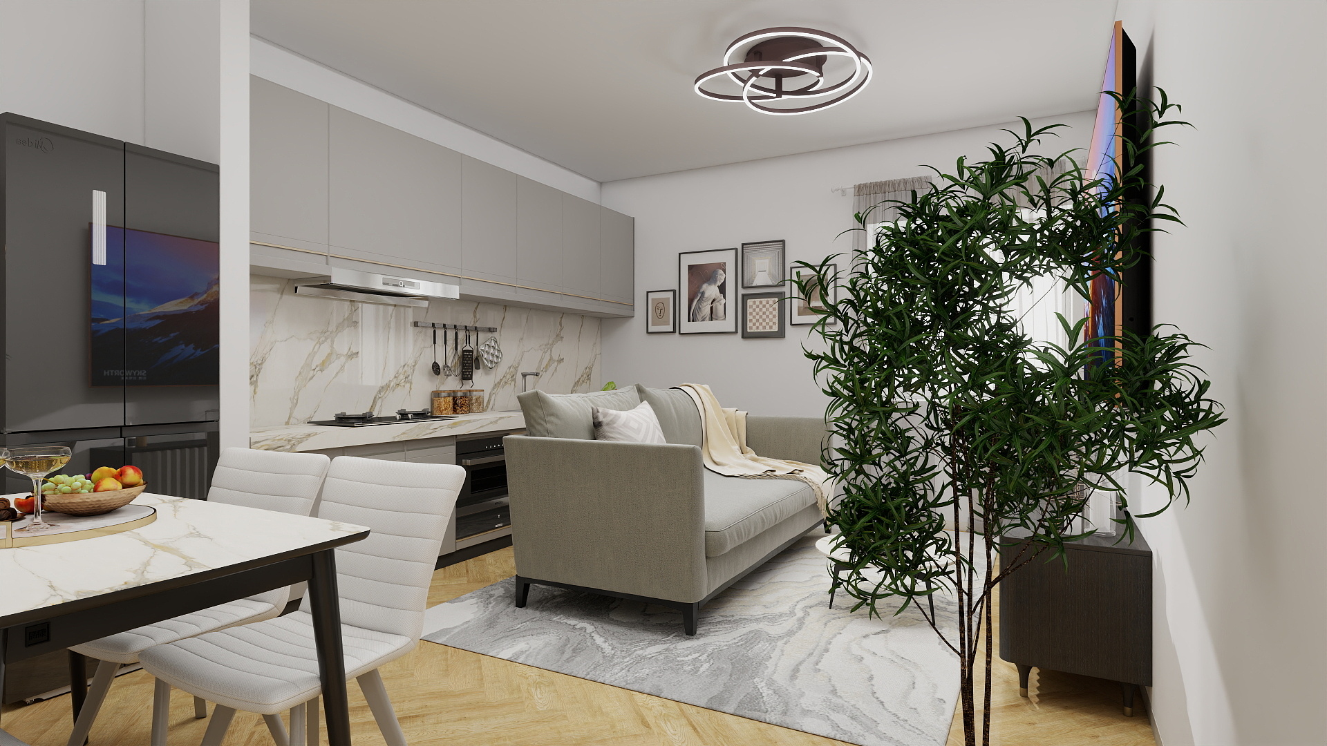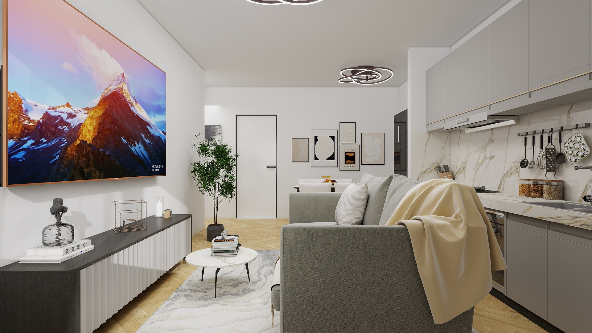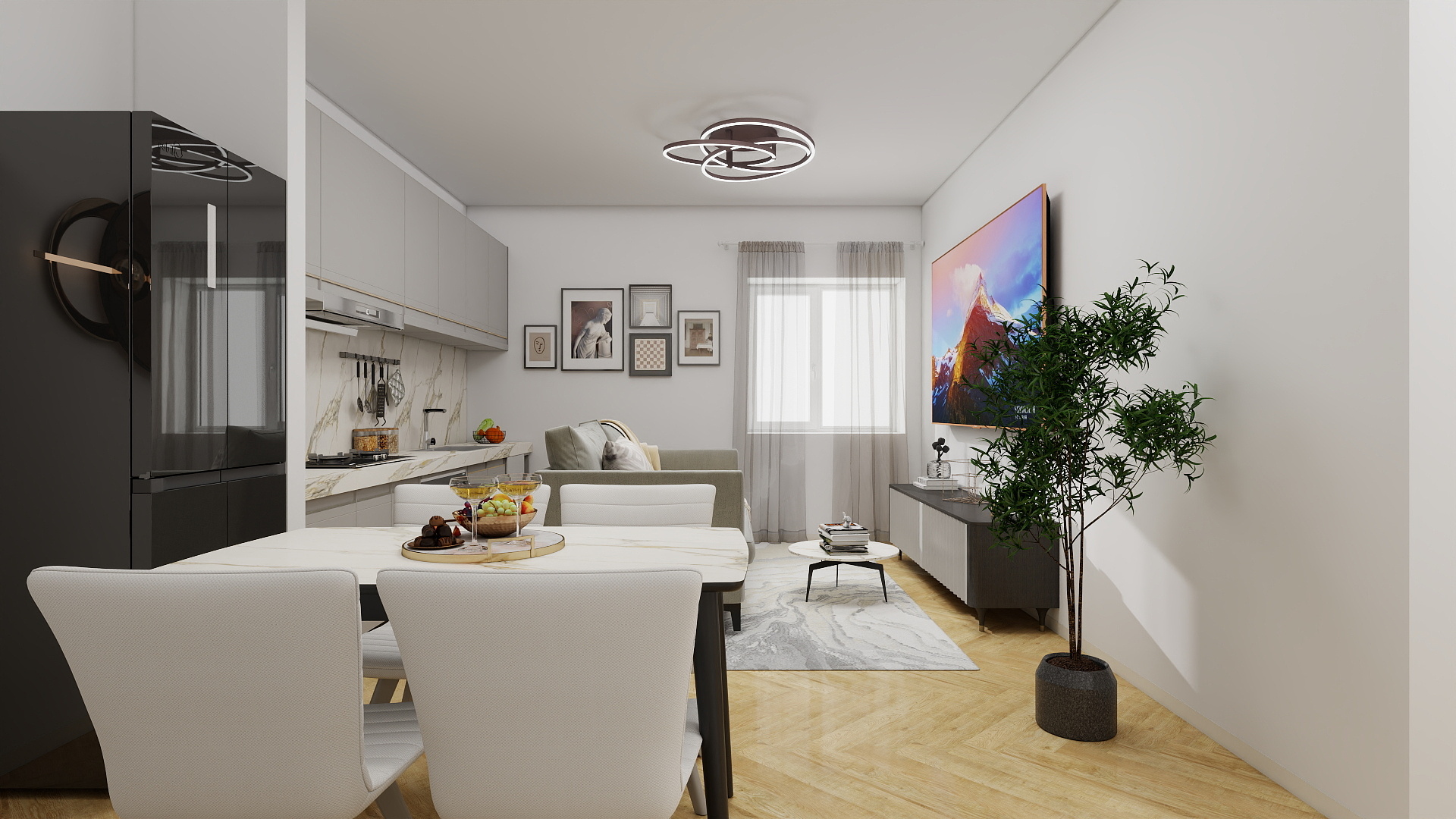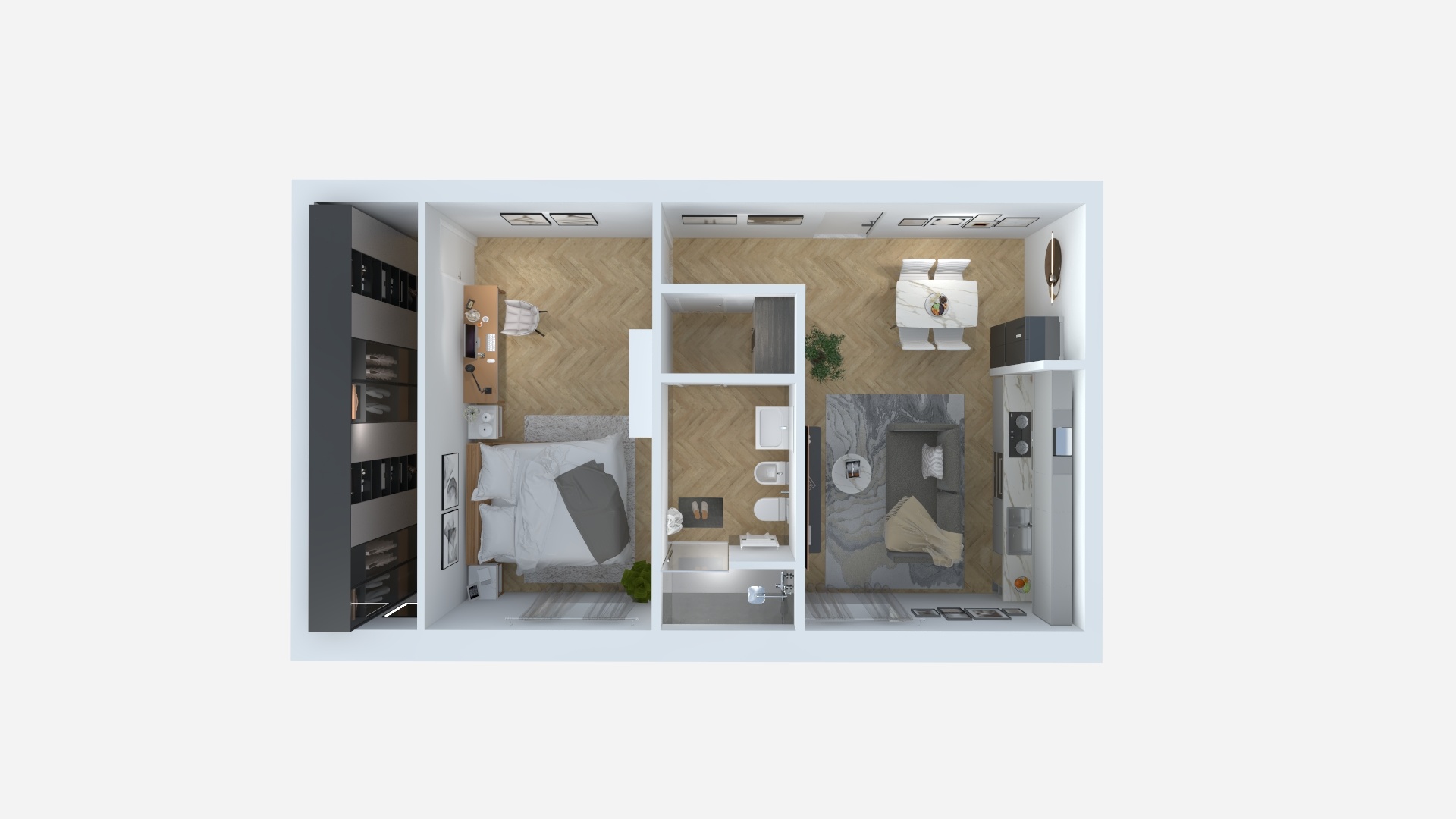 L’appartamento si compone di una luminosa zona giorno con angolo cottura, una camera da letto ben dimensionata con cabina armadio e un bagno con ante bagno adibito a lavanderia. Gli ambienti, funzionali e ben distribuiti, permettono una facile personalizzazione degli spazi, garantendo comfort e vivibilità. L’esposizione favorevole assicura una buona luminosità durante tutto l’arco della giornata.