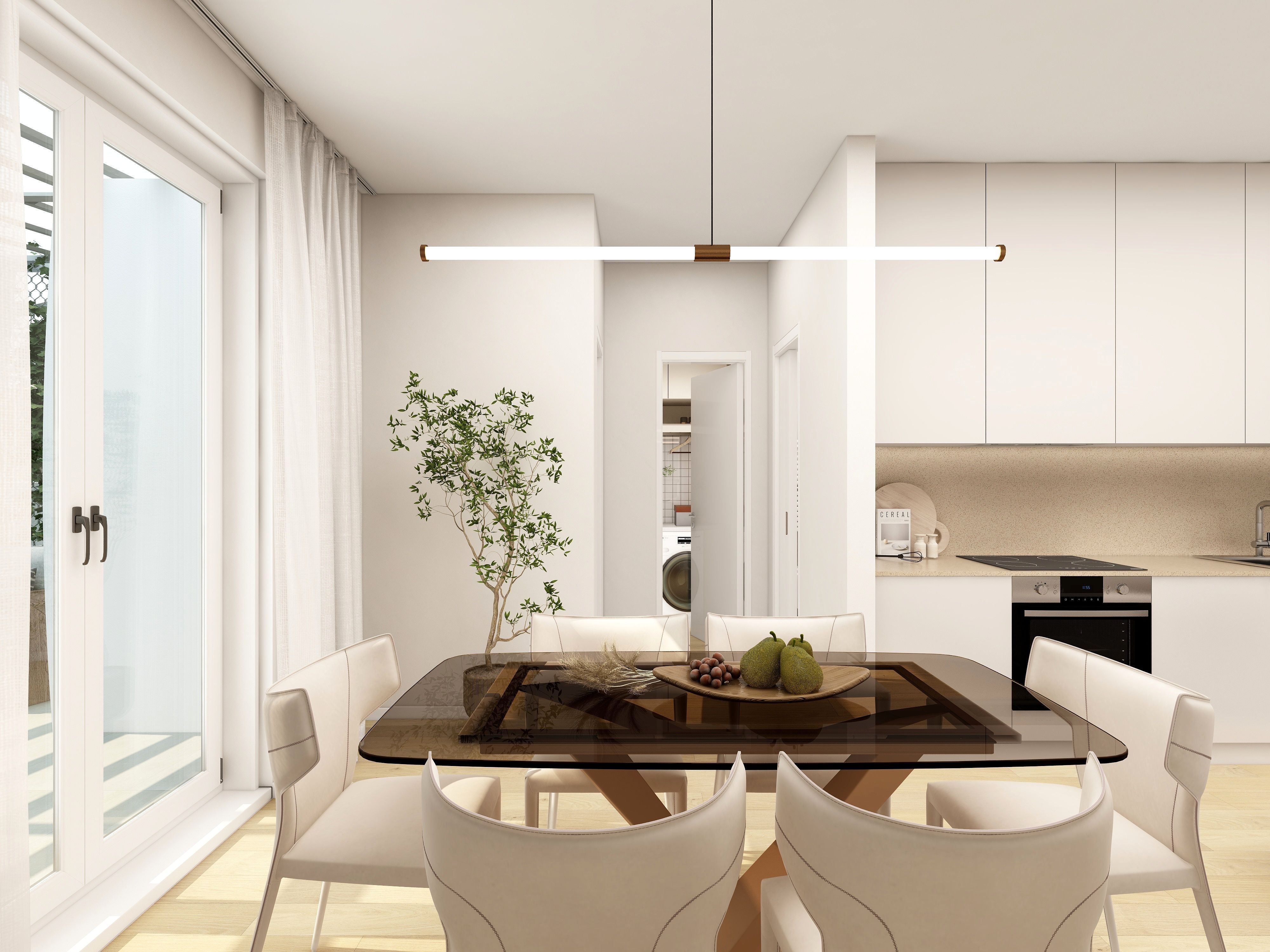 L’appartamento è composto da soggiorno con angolo cottura, luminoso e funzionale, con accesso diretto al terrazzo, ideale per momenti di relax all’aperto, pranzi e cene conviviali. La zona notte è composta da due camere da letto. Completano la proprietà un bagno e un comodo locale lavanderia, pratico e ben organizzato.