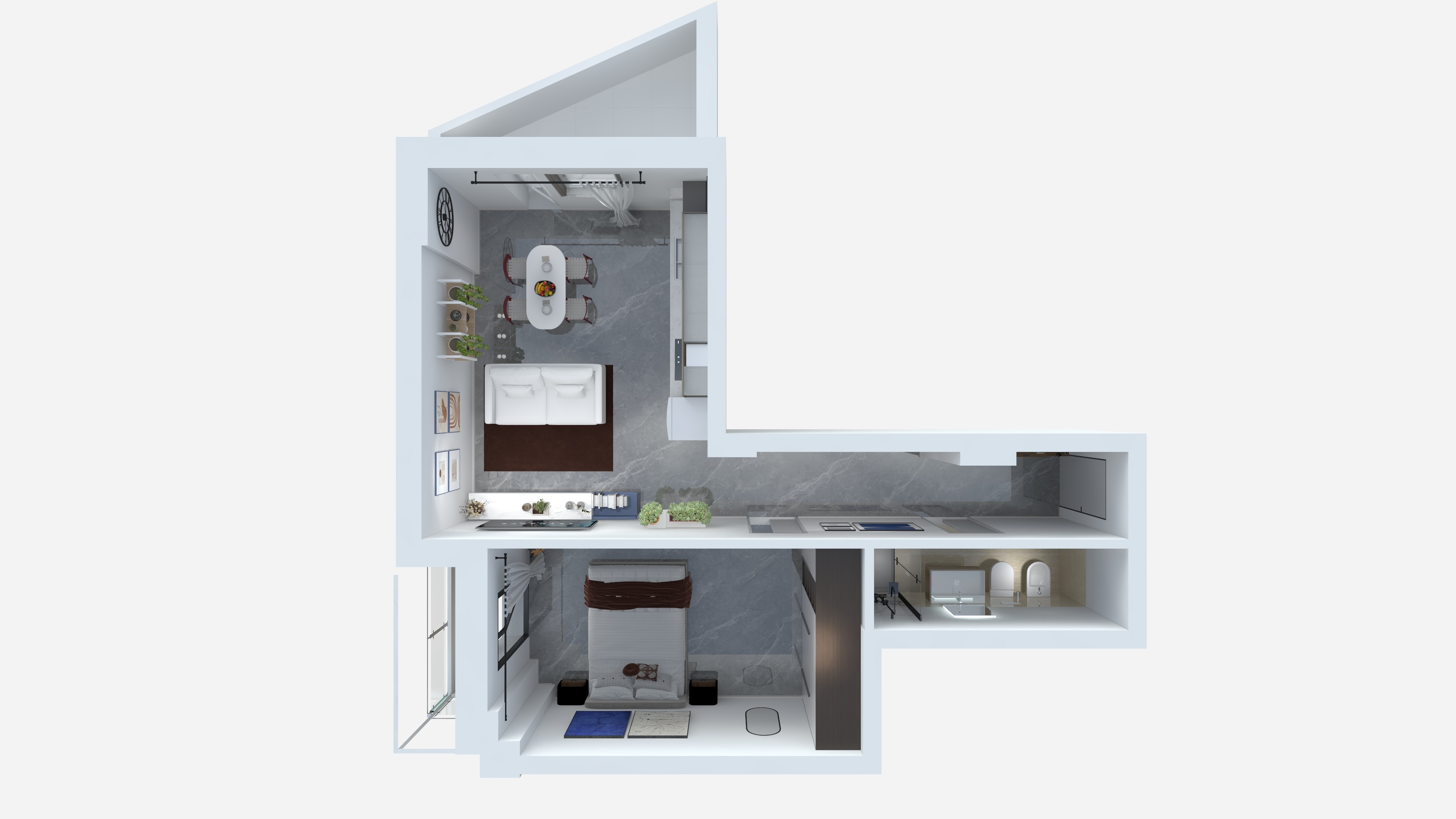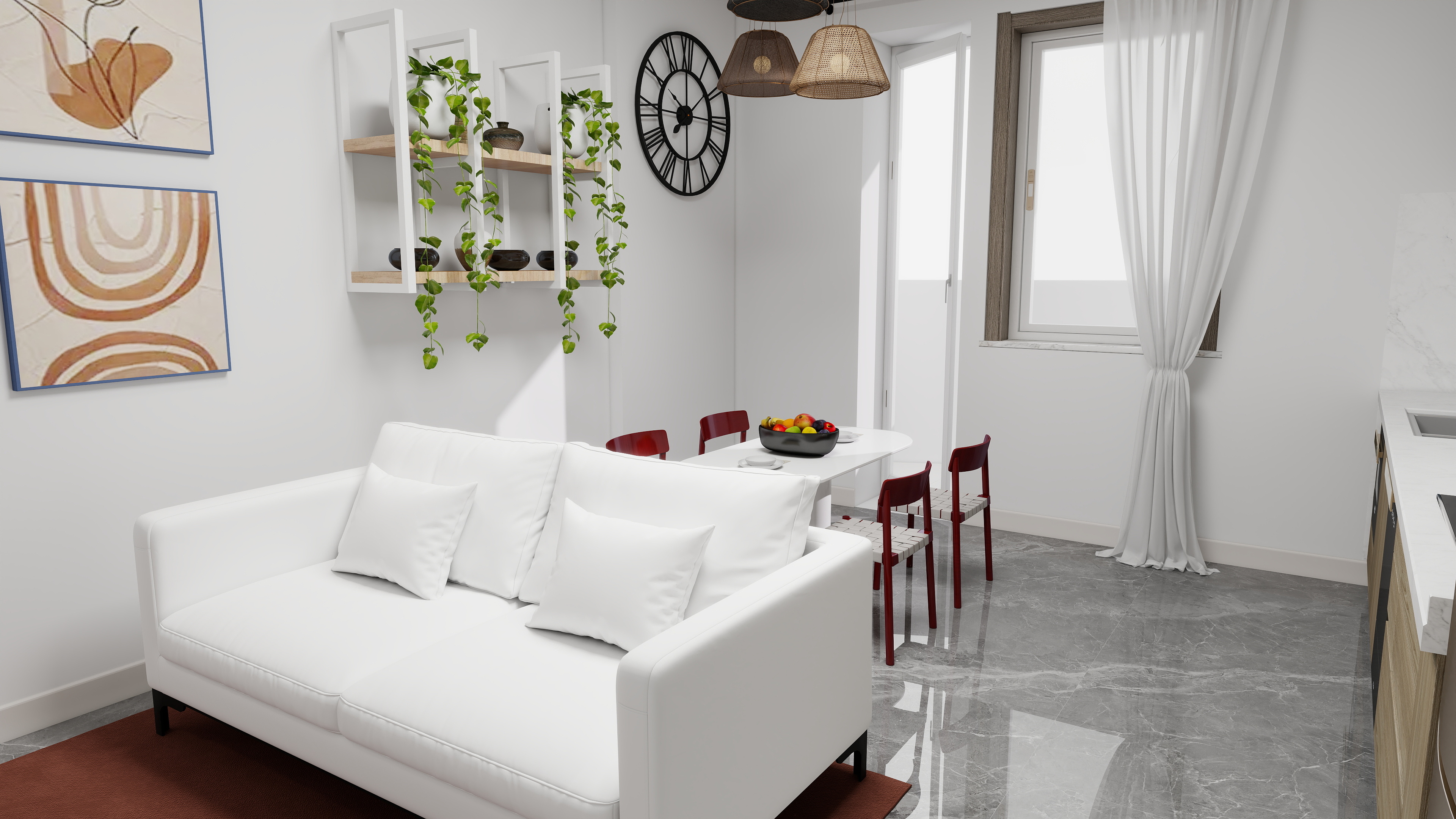 L’immobile è composto da un’accogliente zona giorno con cucina a vista che crea uno spazio aperto e conviviale, una camera da letto matrimoniale, un ampio bagno e due balconcini.
