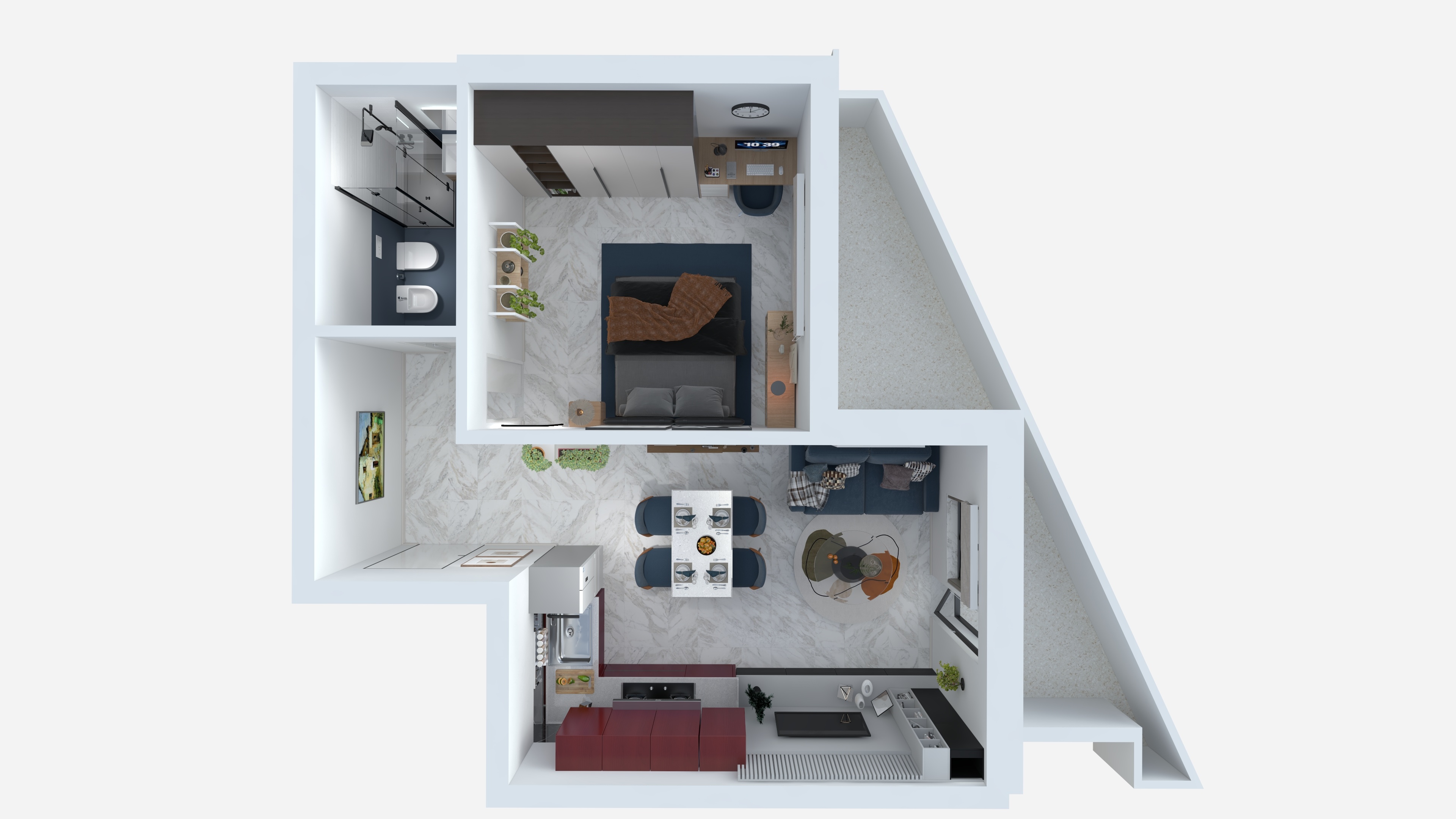 L’immobile è composto da un’accogliente zona giorno con cucina a vista che crea uno spazio aperto e conviviale, un’ampia camera da letto matrimoniale, un bagno moderno e rifinito e un ampio balcone.