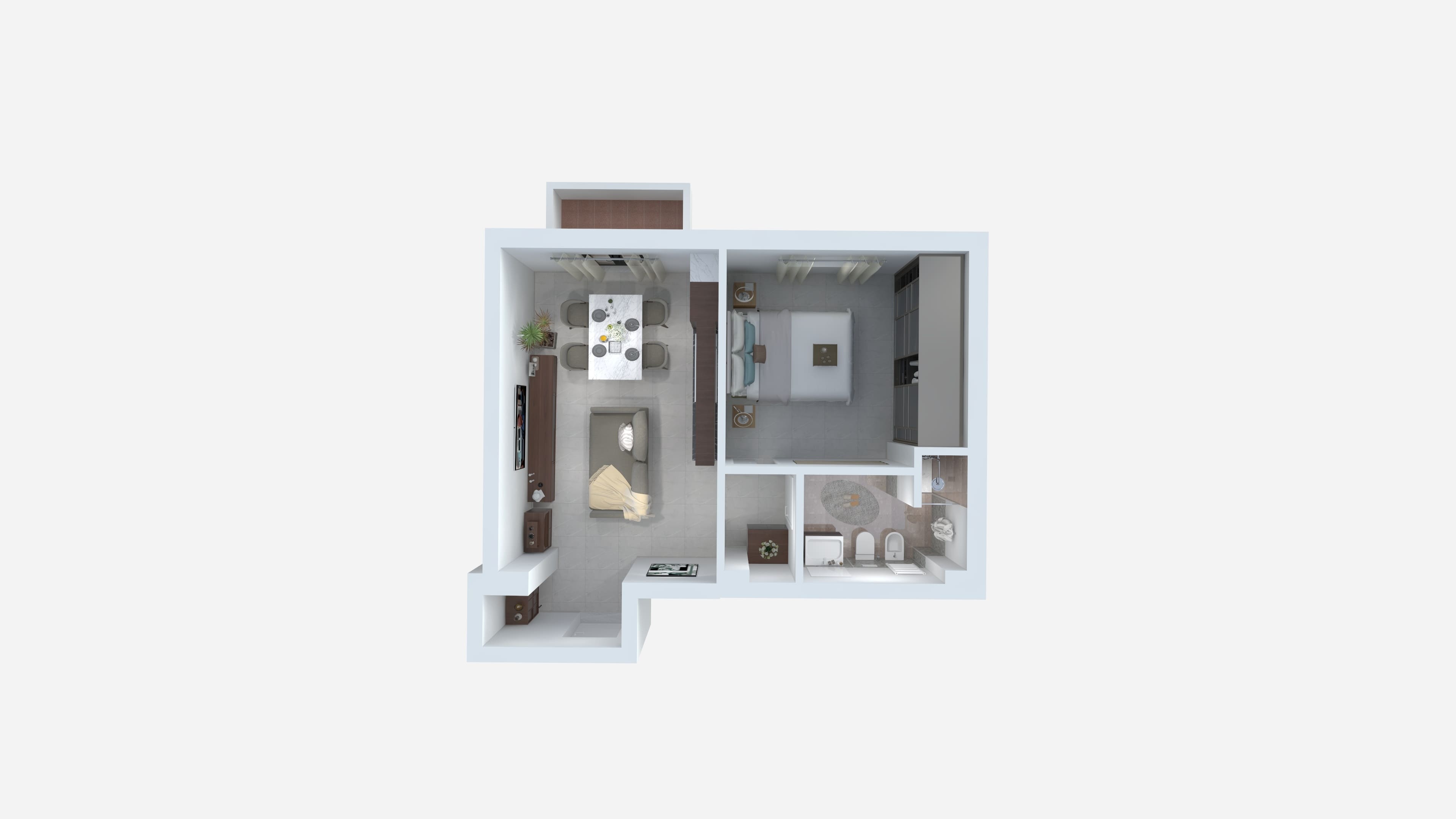 La residenza è composta da una zona living luminosa e conviviale, un bagno moderno e rifinito, due ampie camere da letto – di cui una con bagno in camera – e un comodo balconcino.