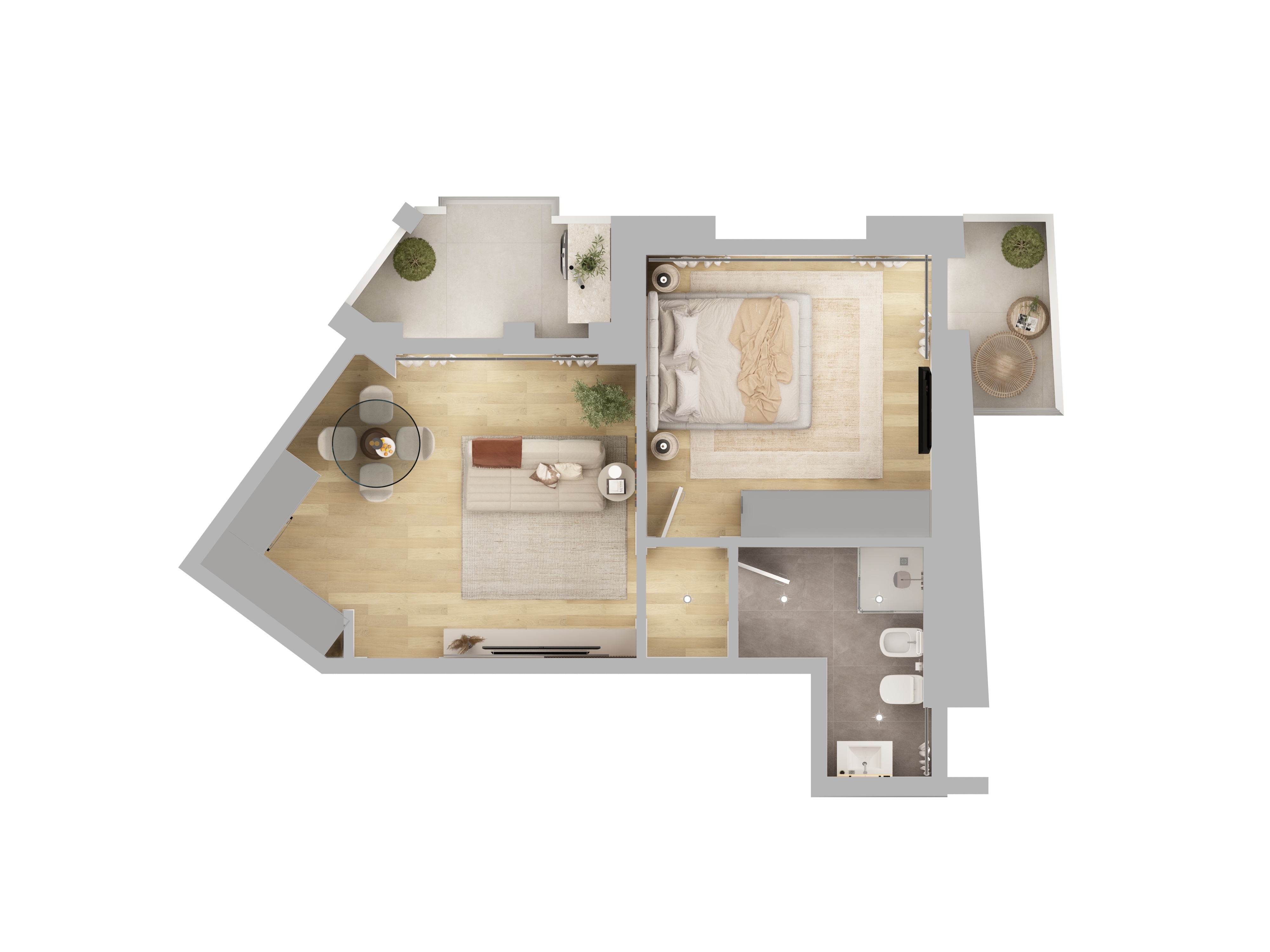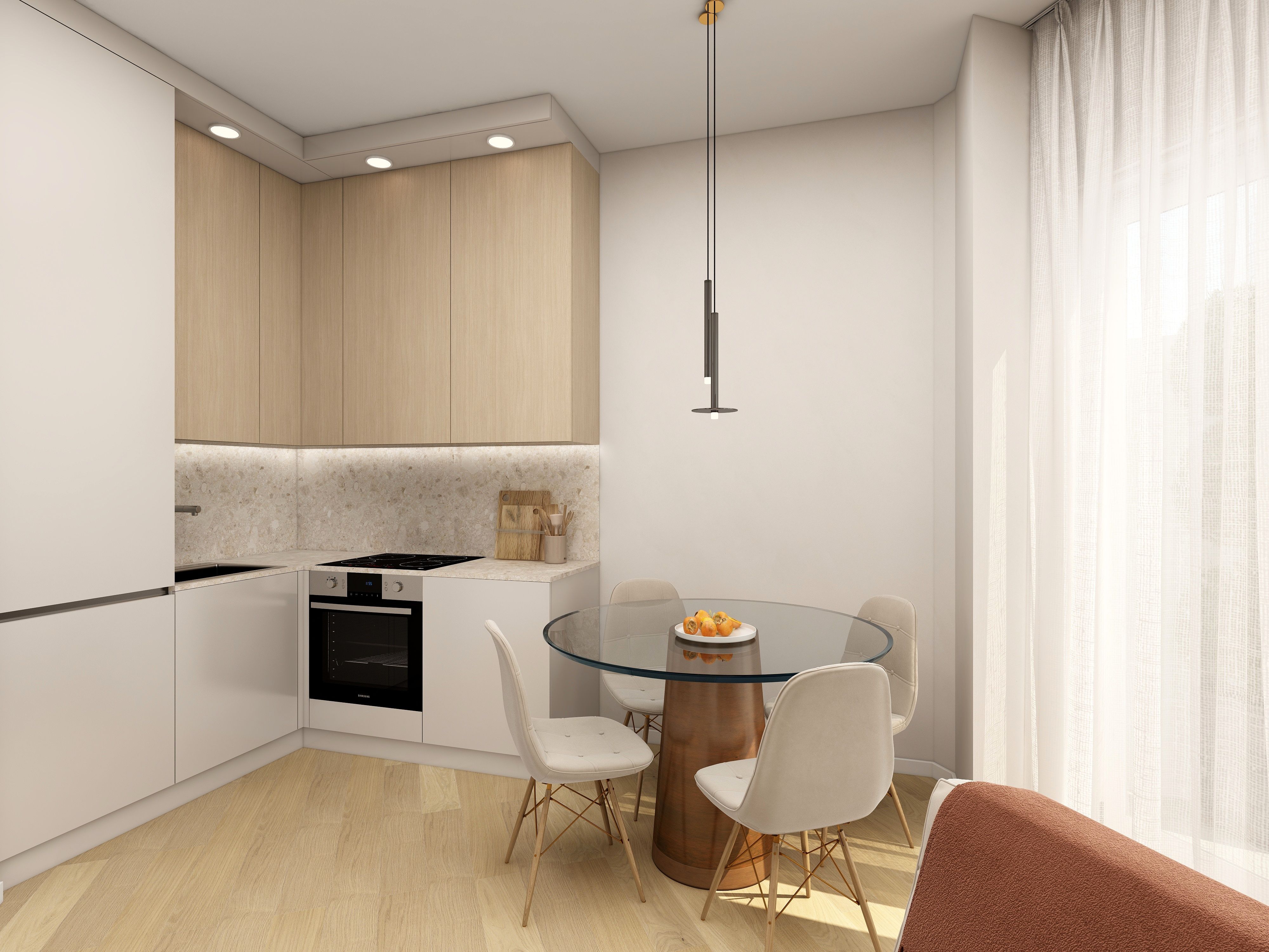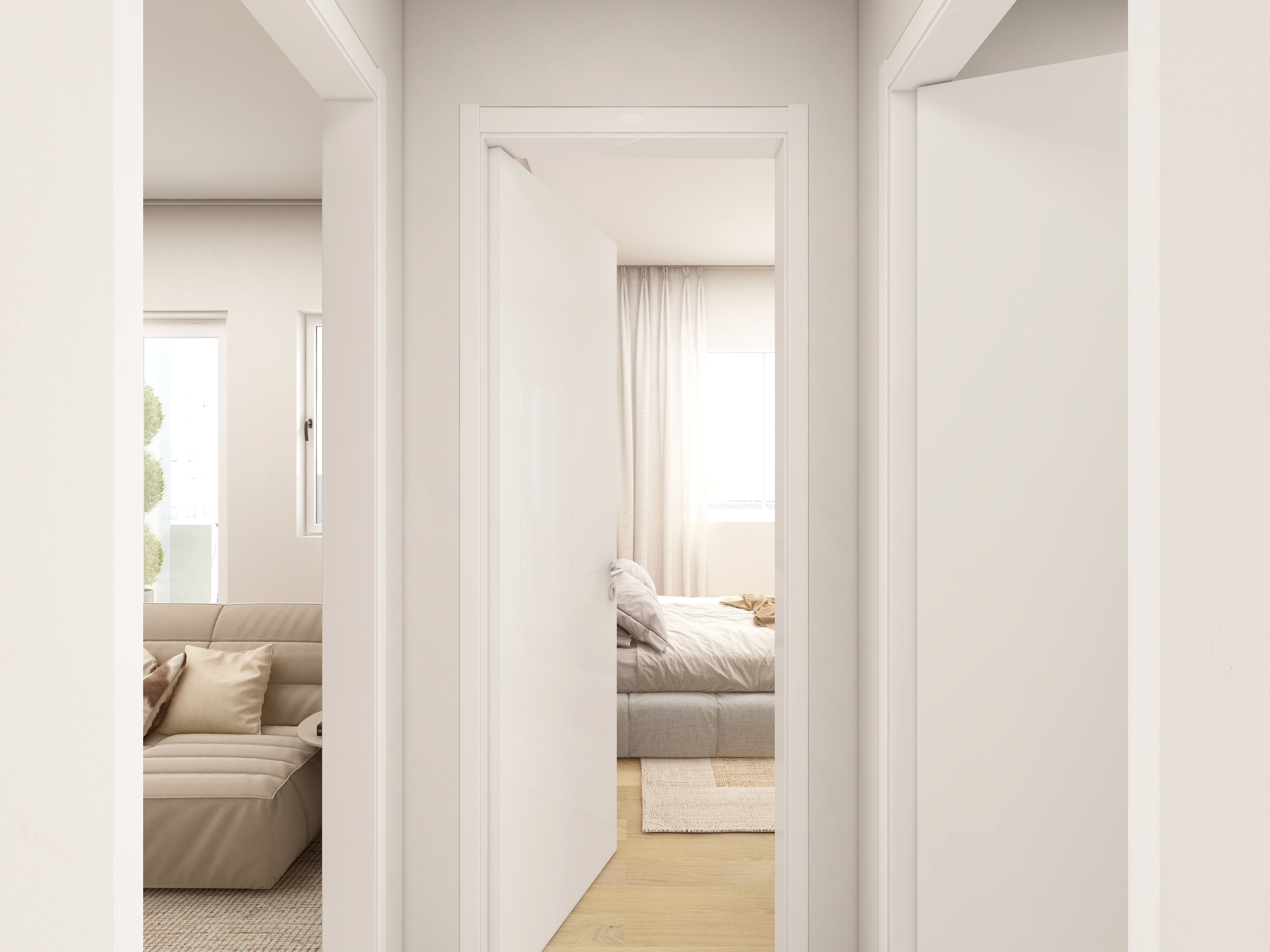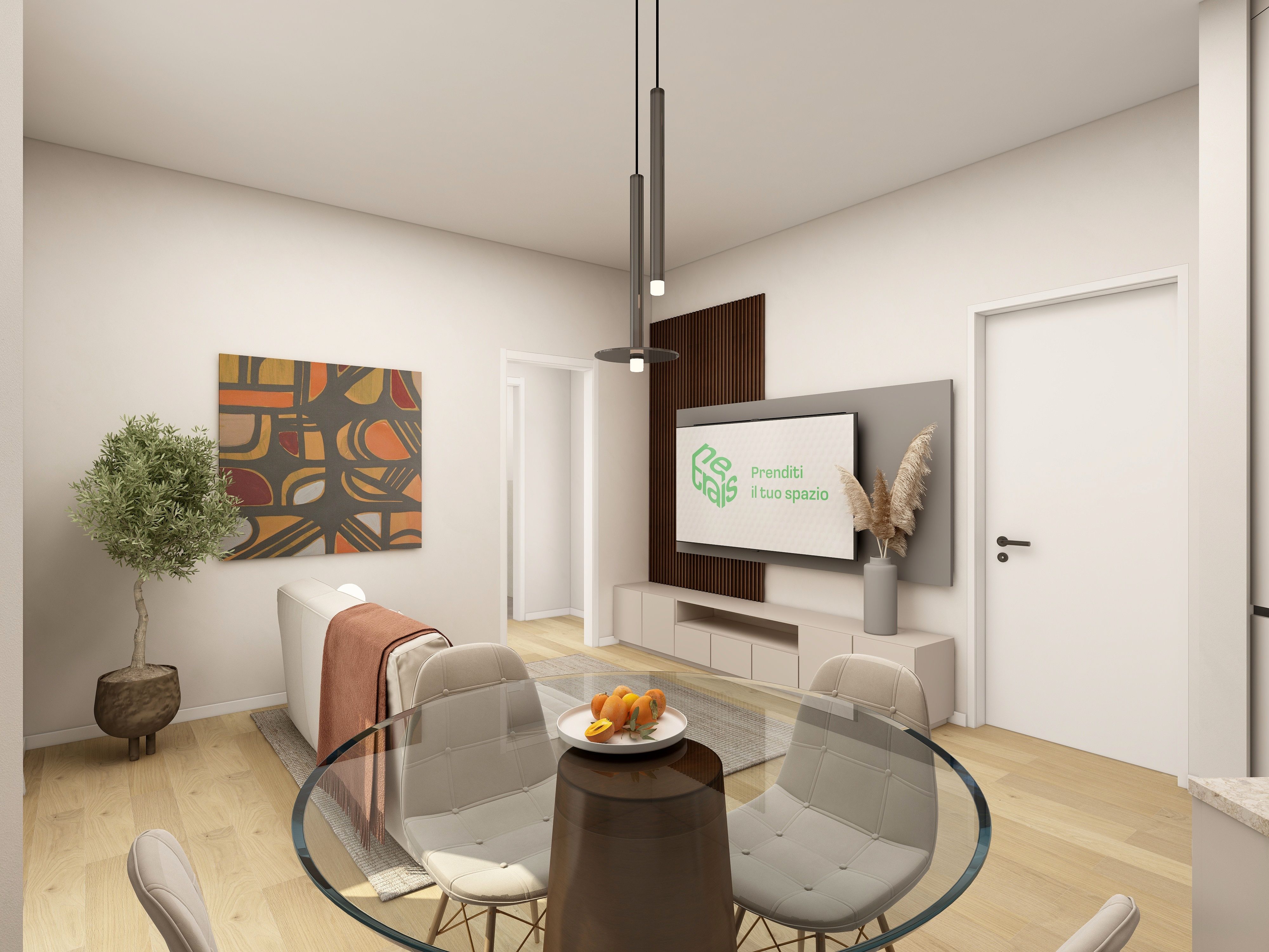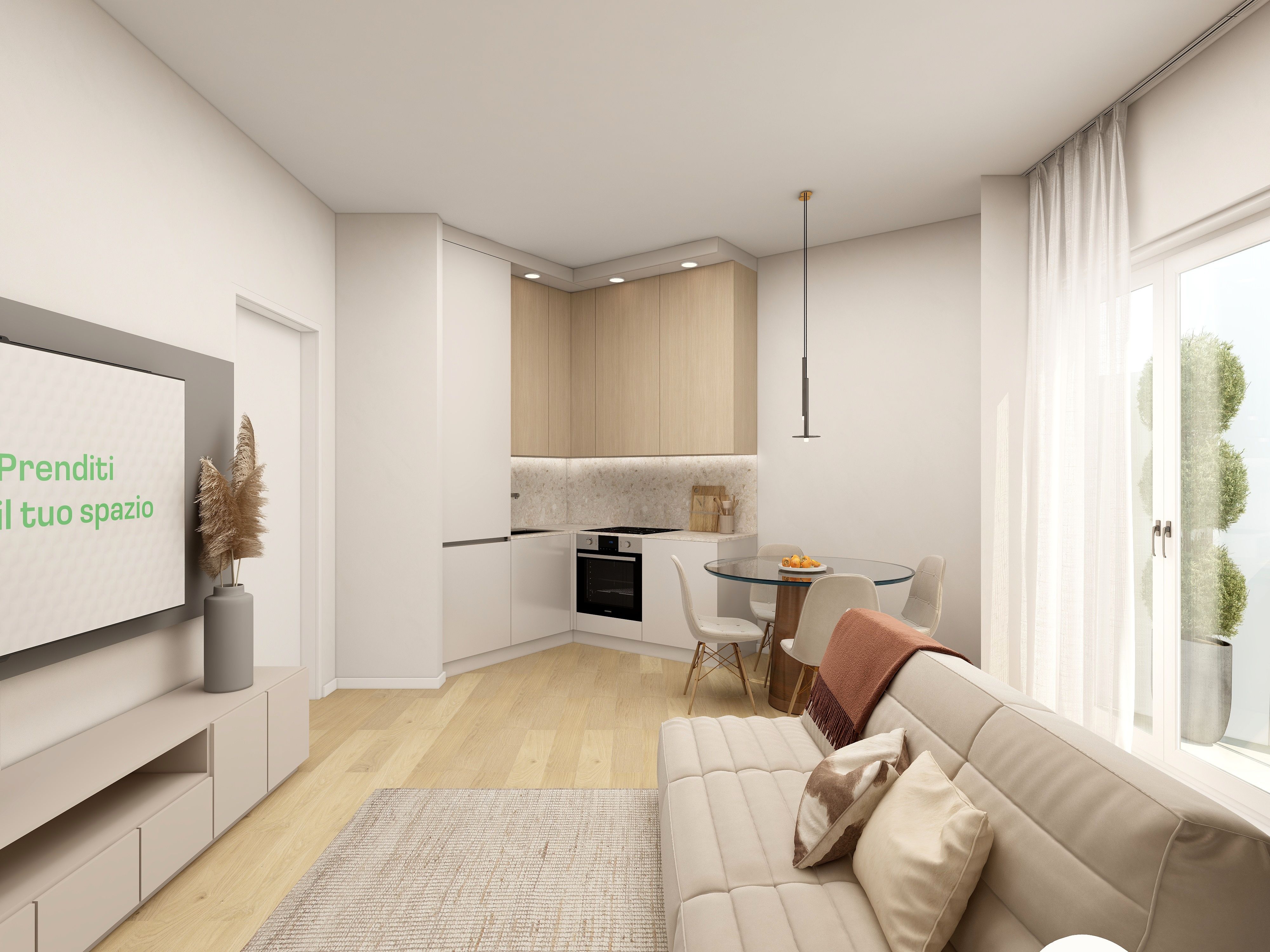 L’ingresso conduce alla zona giorno con angolo cottura, un ambiente luminoso e confortevole, ideale per la vita quotidiana e per momenti di convivialità. Da qui si accede al balcone, uno spazio esterno fruibile che valorizza l’abitazione e garantisce un piacevole sfogo all’aperto.