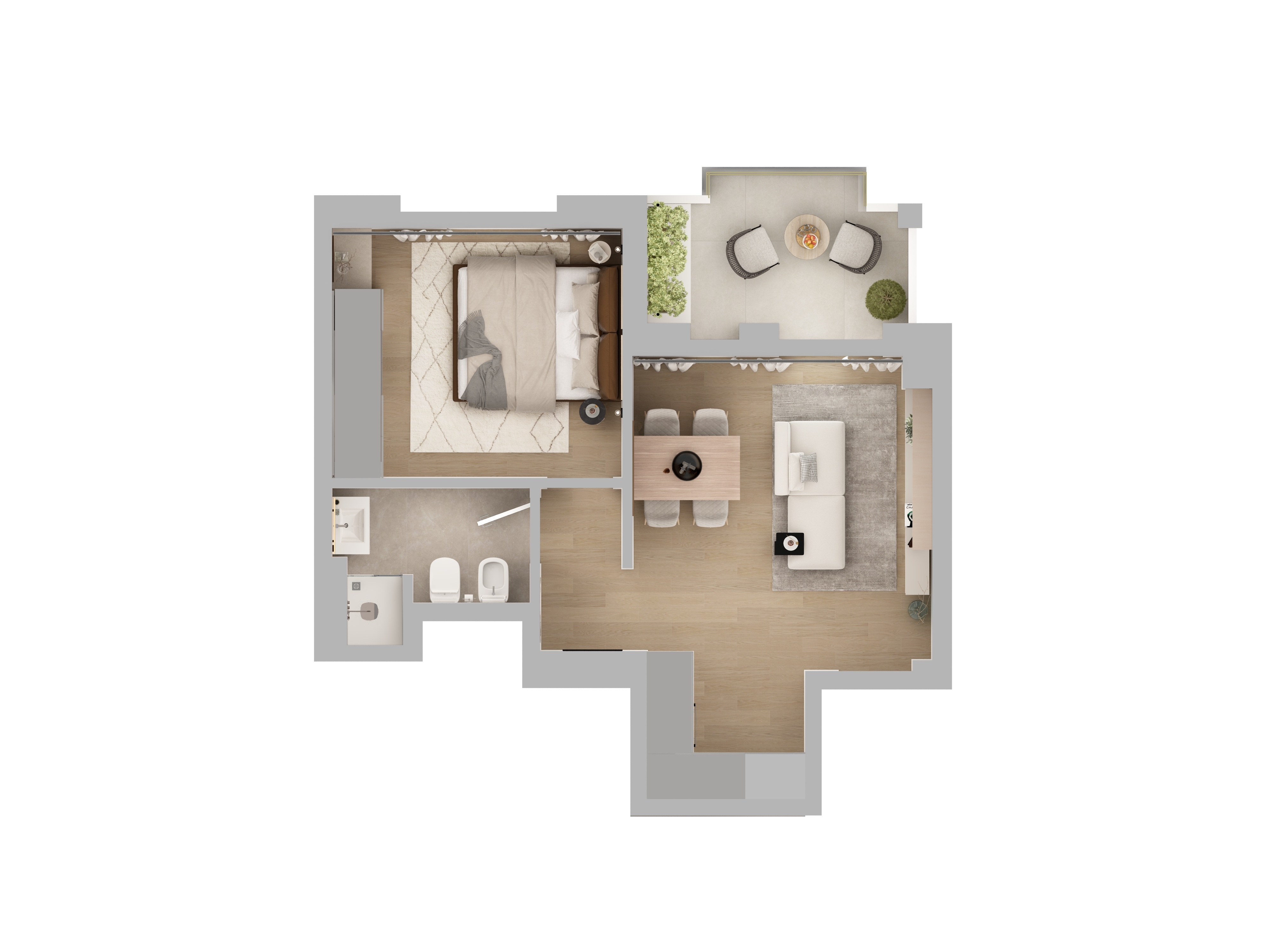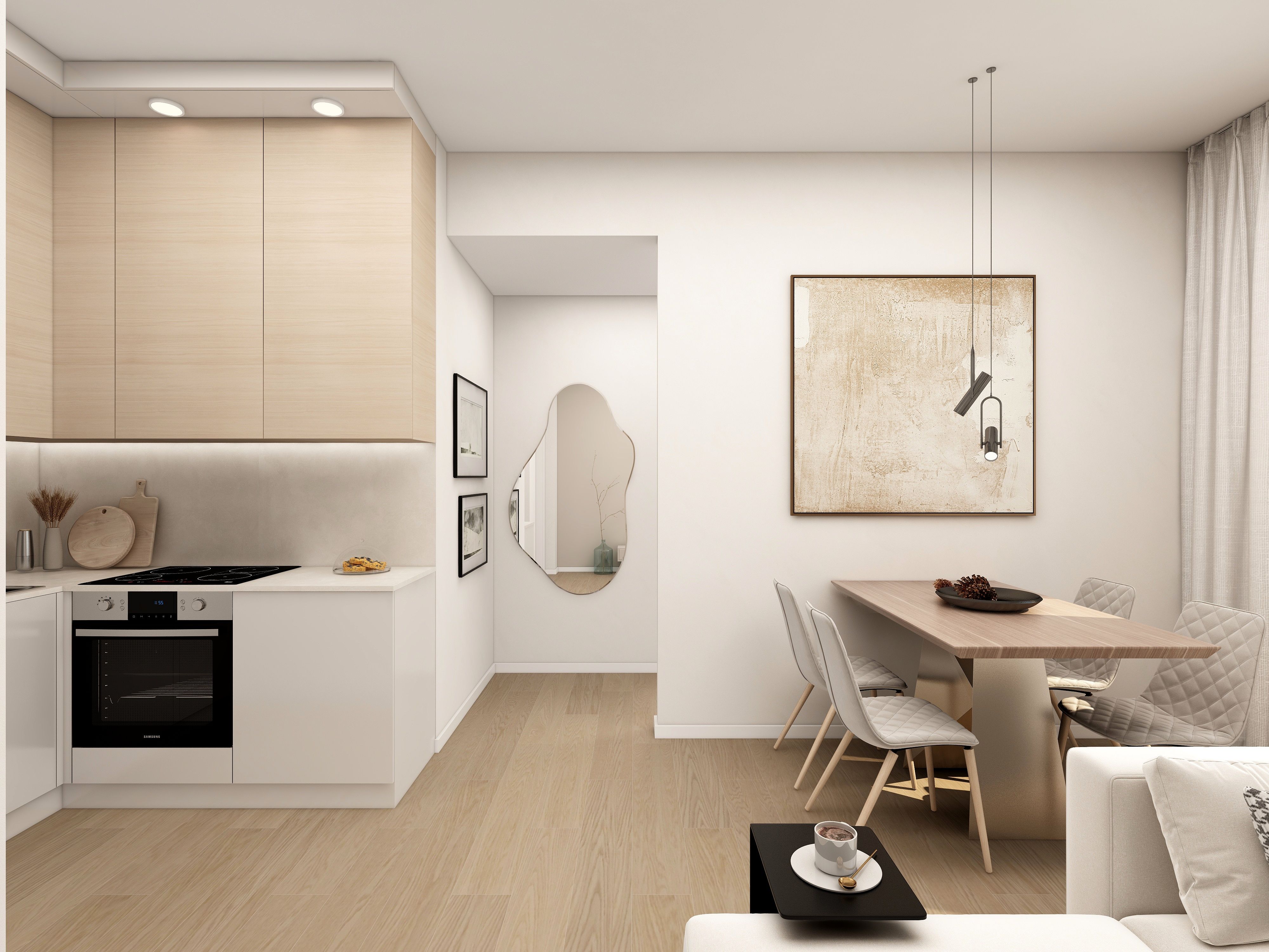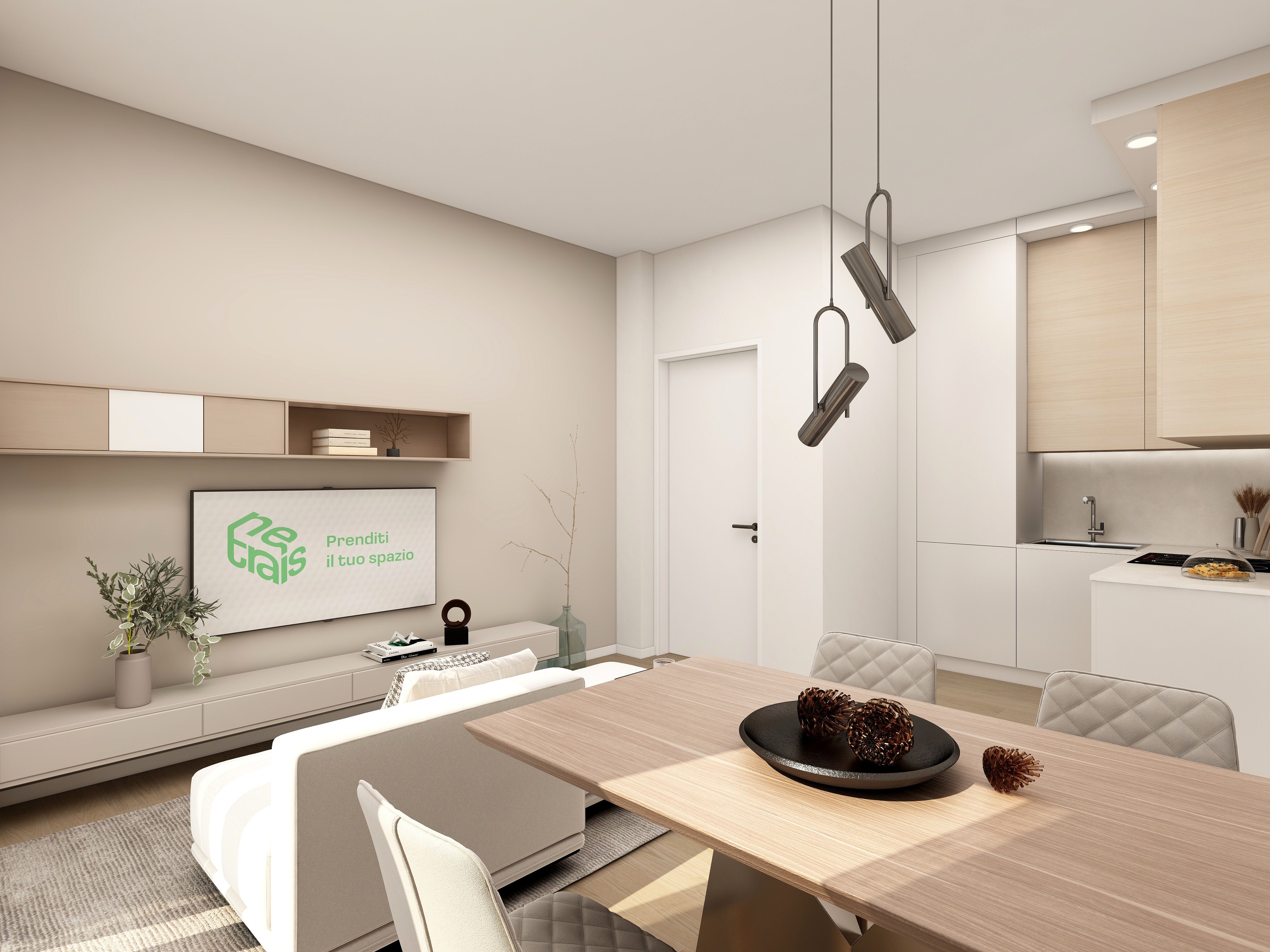 L’ingresso conduce alla zona giorno con angolo cottura, un ambiente luminoso e confortevole, ideale per la vita quotidiana e per momenti di convivialità. Da qui si accede al balcone, uno spazio esterno fruibile che valorizza l’abitazione e garantisce un piacevole sfogo all’aperto.