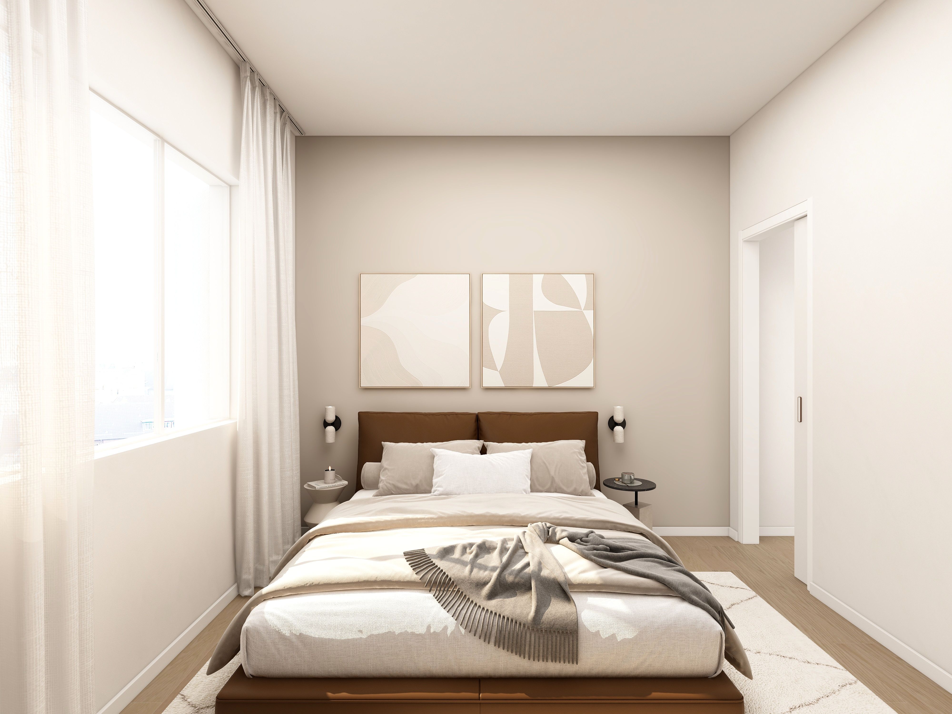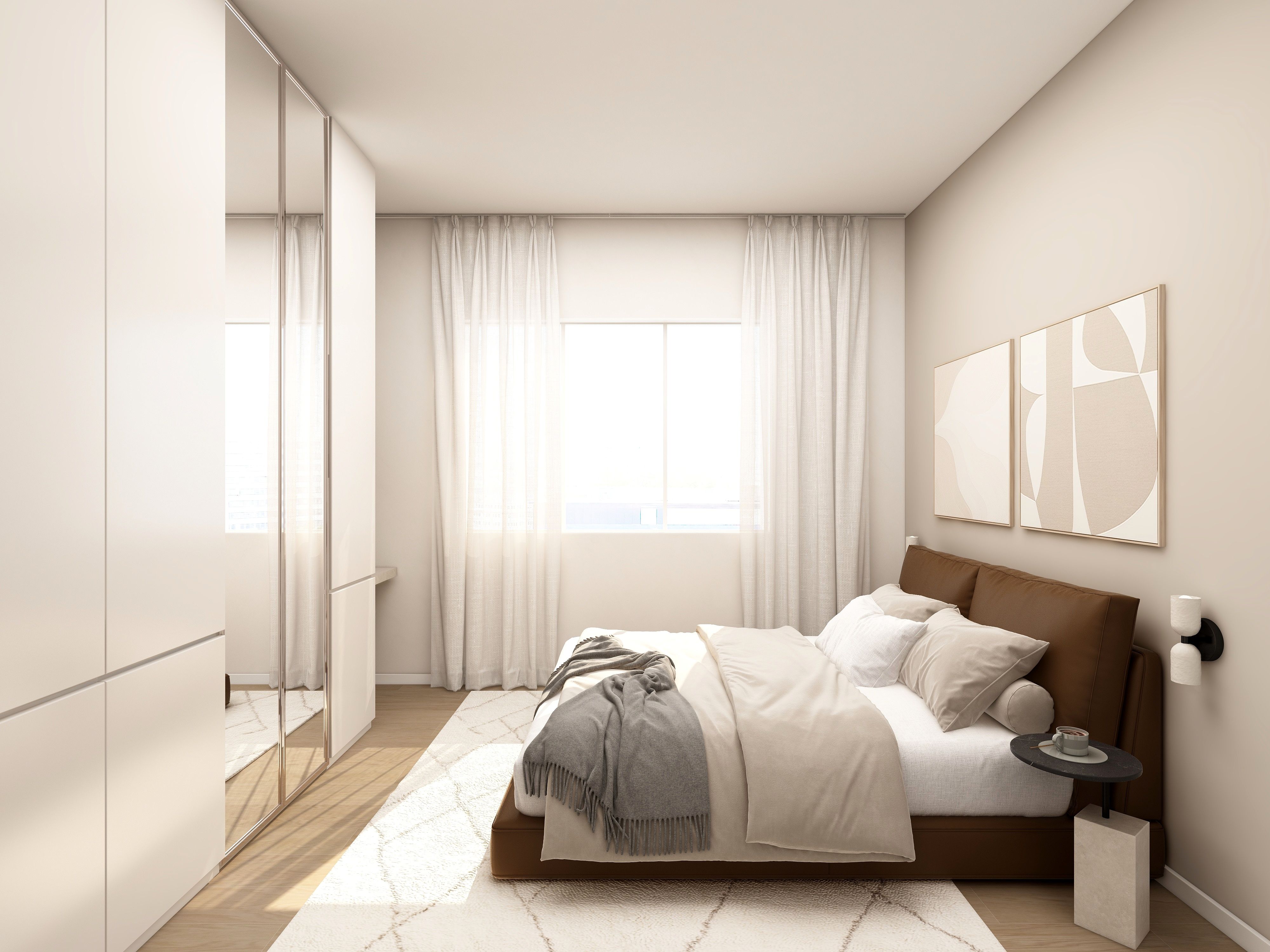 L’ampia camera da letto è luminosa e ben proporzionata. Completa la proprietà il bagno e una disposizione interna che rende l’appartamento pratico e adatto a diverse esigenze abitative.
