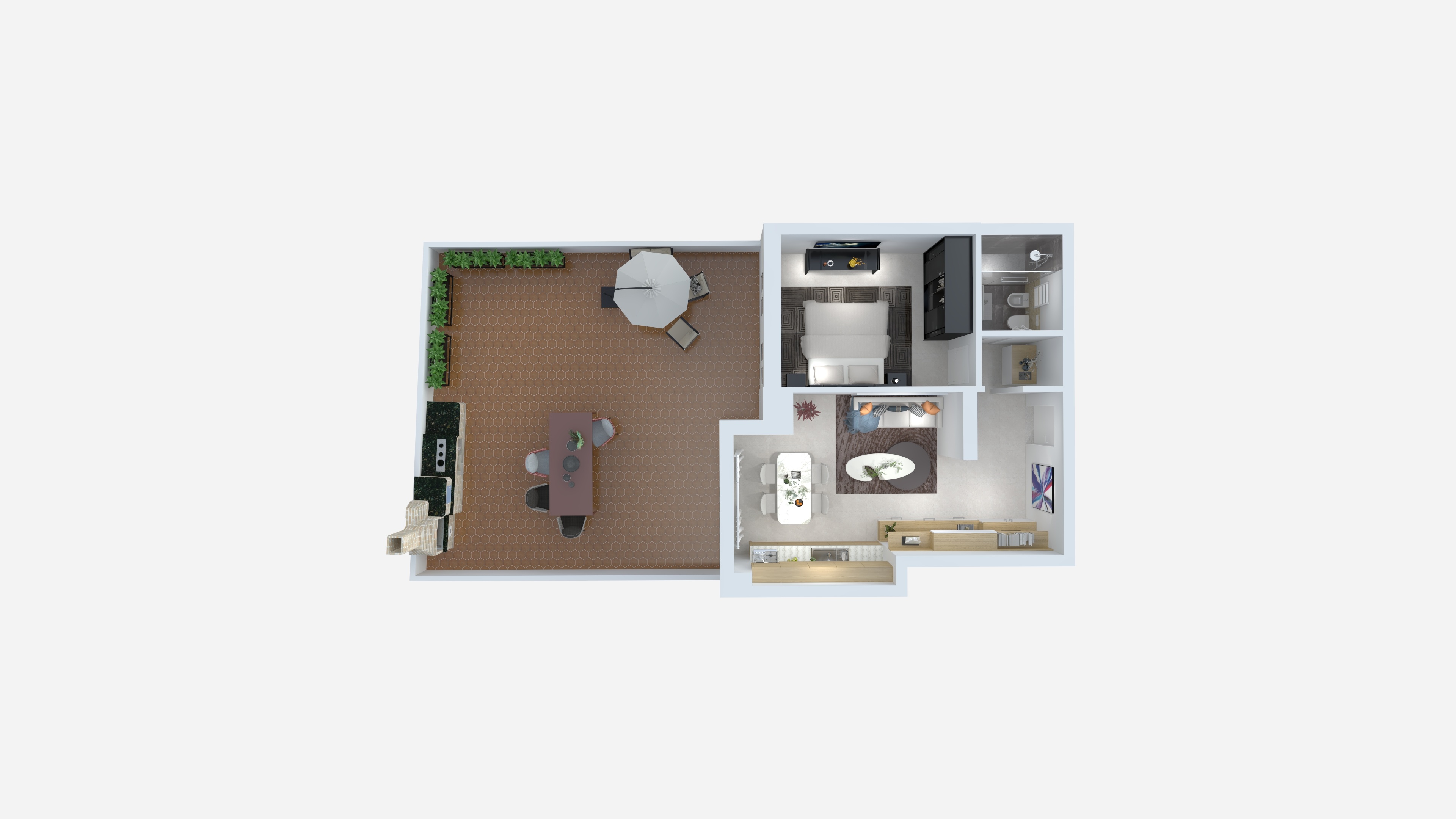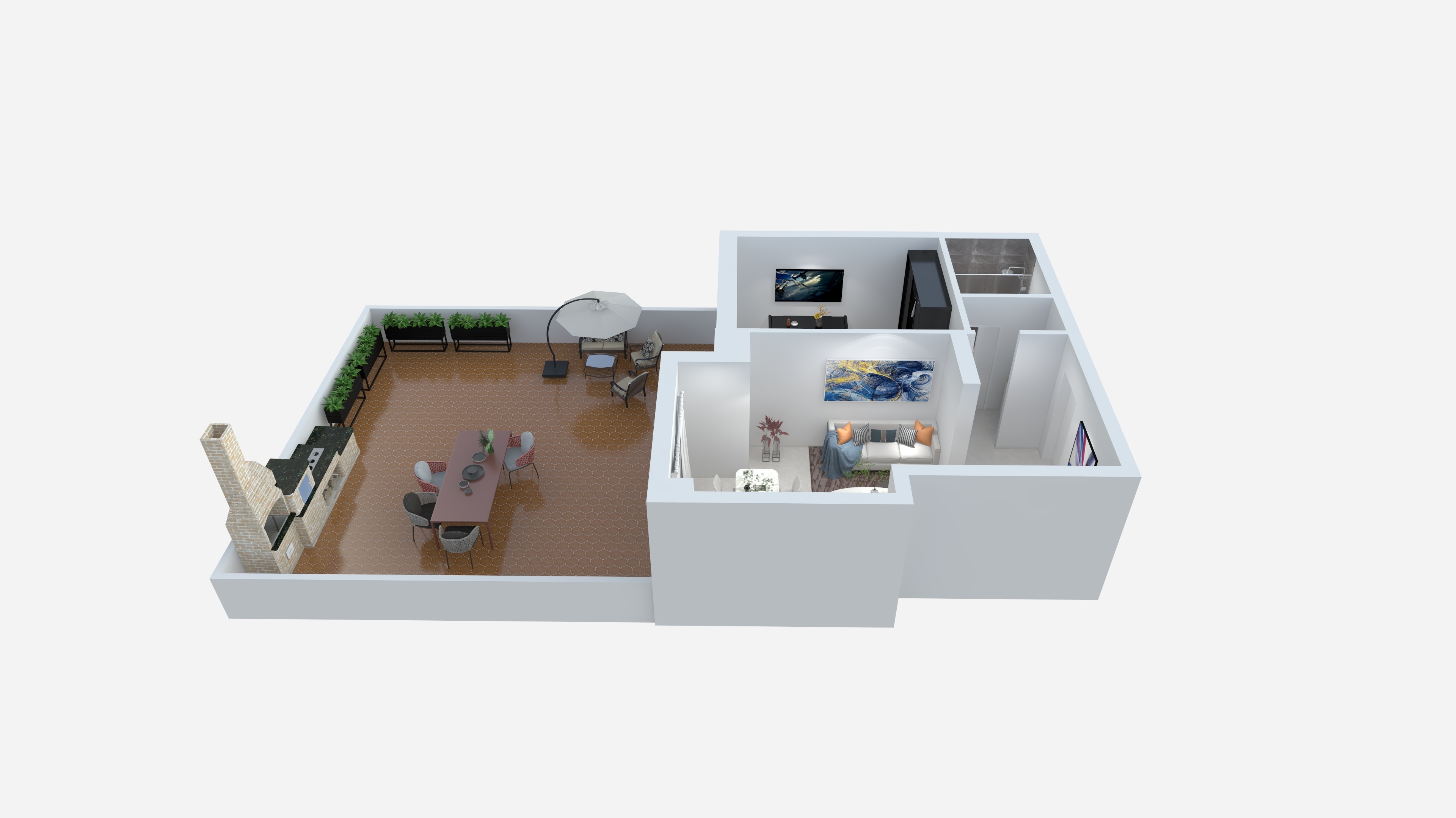 La residenza presenta un layout funzionale e una gestione sapiente della luce. L’interno è composto da una zona living luminosa e accogliente, un bagno moderno e ben rifinito, una spaziosa camera da letto matrimoniale e un grande terrazzo che offre un prezioso sfogo esterno in un quartiere di pregio.